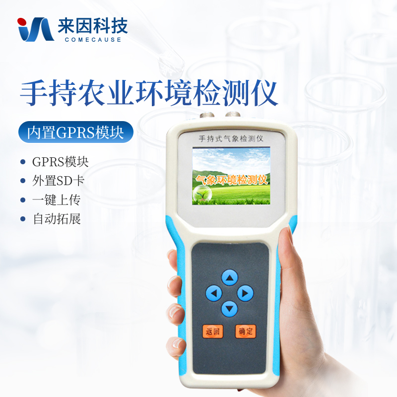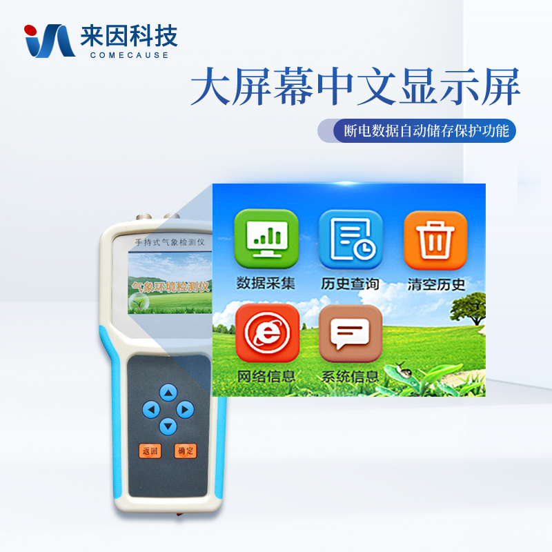 简要描述: 手持式农业气象监测仪IN-QX14采用一体化结构设计,内置GPS模块,4G模块,外置SD卡,能准确的测量出被测地点的地理信息,界面除显示所测环境参数、存储数据外,还可显示测点的经纬度。通过内置的GPRS一键上传被测点的环境因子测量数据等。同时还可以通过外置SD卡直接把数据导出到电脑上。本机体积小巧、美观,操作简单方便,性能可靠,野外携带极为方便。主机连接传感器后可以手动存储记录也可通过主机任意设置采样间隔,自动存储记录数据。