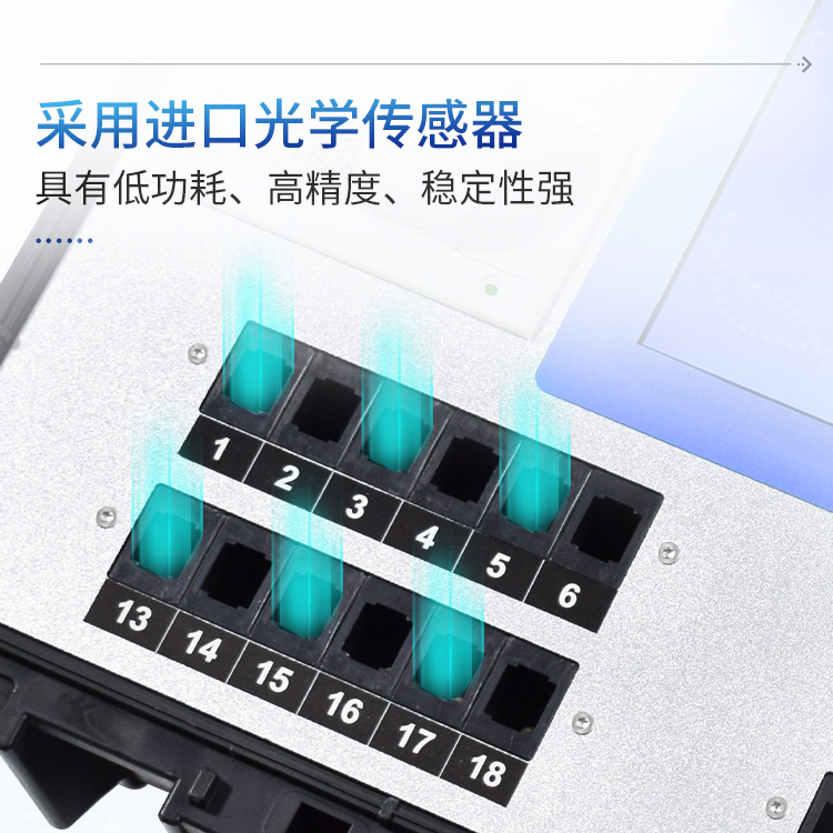 4、★四波长冷光源,24个检测通道,每个通道均配置410、520、590、630nm波长光源,标配先进的光路切换装置,专业光路切换功能可实现最多64波长,并且所有检测项目可实现所有通道同时检测。