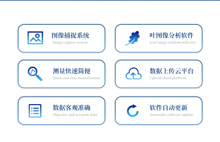 云平台数据传输:数据可上传至云平台,可按照任意时间段和叶片类别检索历史数据,可查看测量时间叶片面积、周长,最大叶长、最大叶宽,矩形度,凹凸比,球状性,形状系数,虫洞数量,虫洞面积等数据,可对不同参数做柱状图分析,支持数据以EXCEL表格形式导出,可根据选择的时间段展示数据、支持数据以表格、柱状图等分析、在线下载。