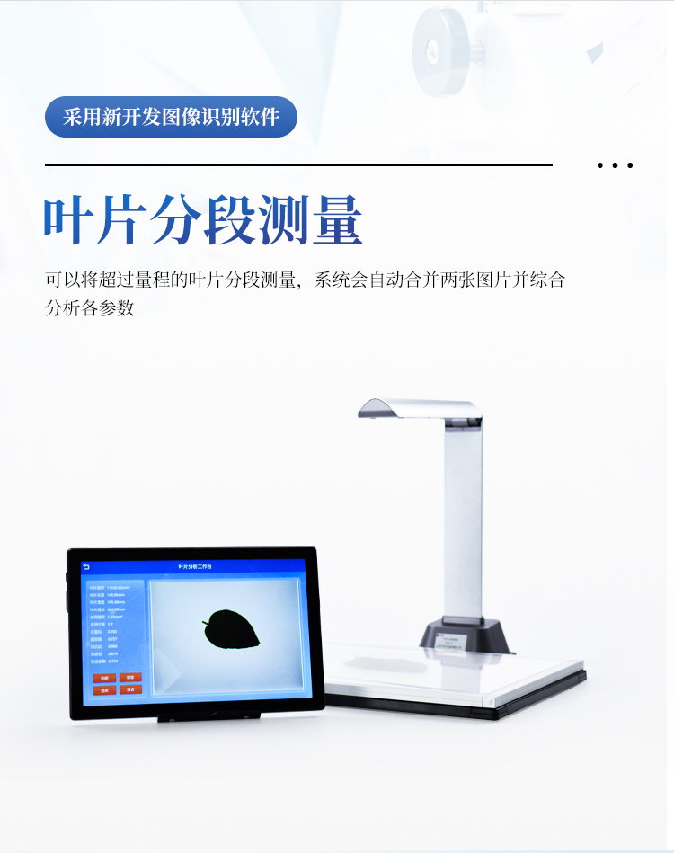 简要描述: 叶面积测定仪YMJ-P2由图像采集设备和图像处理软件组成,采用本公司新开发的图像识别软件,根据叶片轮廓特征提取、图形实物转换、边缘检测等技术,能够形象并快速得到所测叶片面积、周长、虫洞数量等参数,并且可以将叶片分段测量,系统会自动合并两张图片并综合分析各参数。相比传统的叶面积,具有测量更快速简便、结果更形象客观、数据多样并大大减少了人为操作带来的误差。