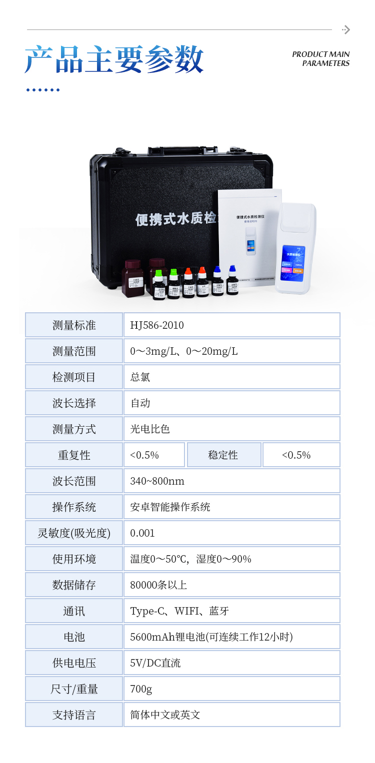 适用于纯净水厂、自来水厂、生活污水处理厂、工业污水、水产养殖、河流监测、游泳场馆、水源保护、生产监测、科研实验等。