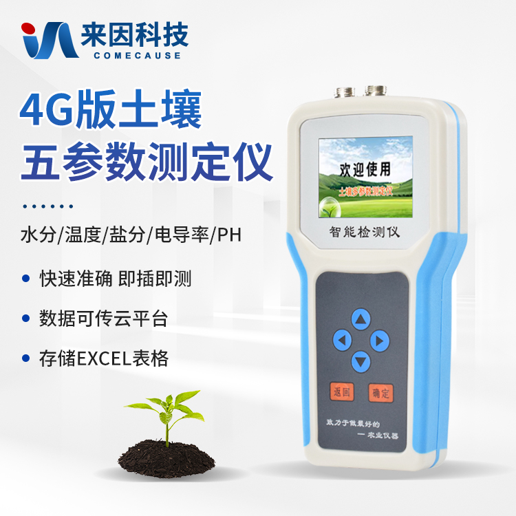 土壤水分温度盐分PH测定仪采用一体化结构设计,可快速准确测量土壤中含水量、温度、电导率(盐分)、酸碱度,可对多处样地、不同土壤深度的水分含量温度盐分和PH进行快速检测和长期连续监测。